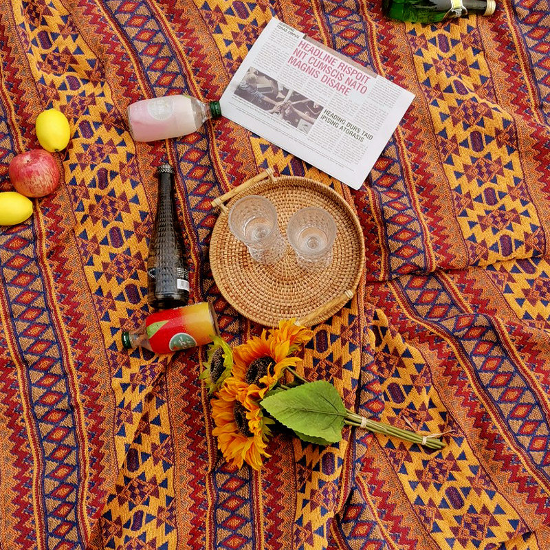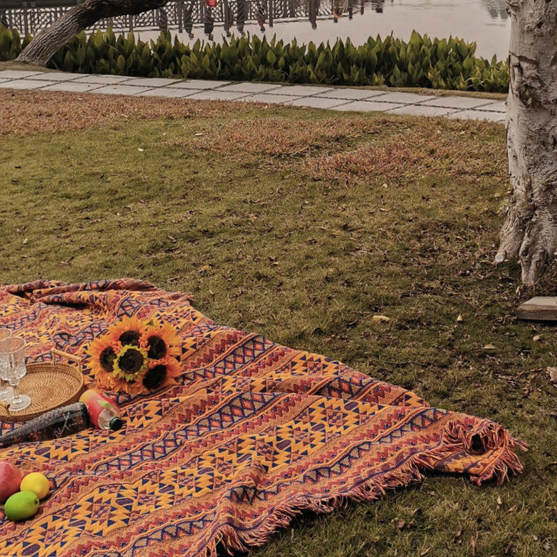 Bohemian vintage picnic blanket blanket European blanket Thickened picnic cloth Woven cotton and linen blanket Mat Floor mat