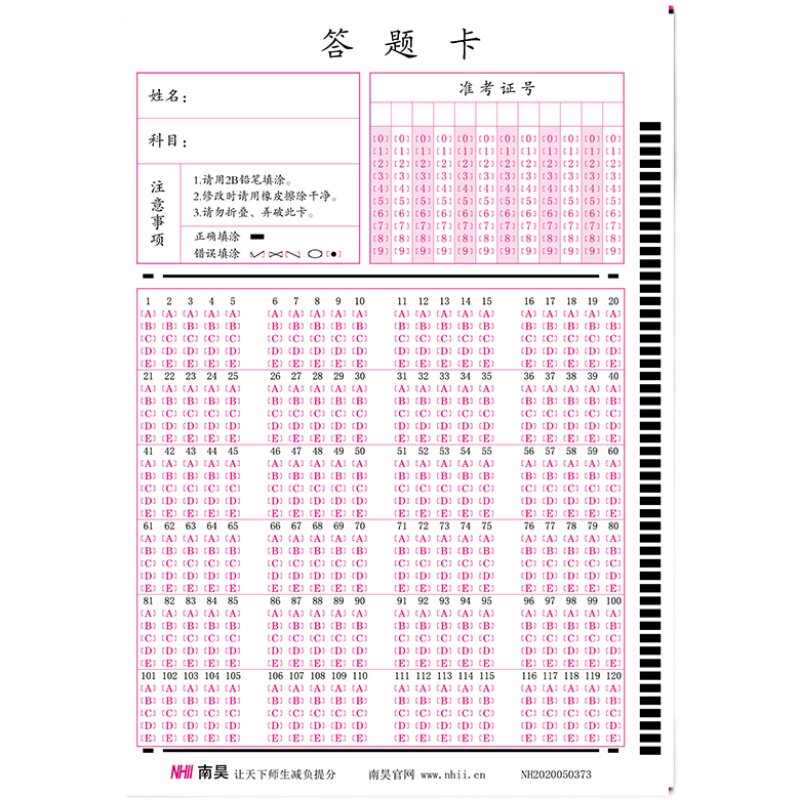General 120 question card ABCDE Five options for language school exam machine answer card card-reading paper jam custom-Taobao