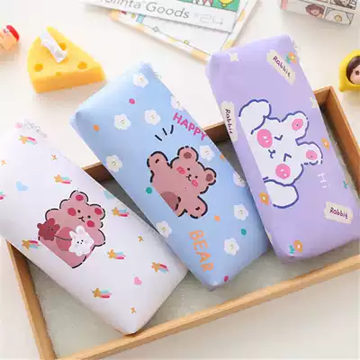 Pen bag Press the gel pen 5 sets 2 packs (sauce purple hair only pen bag 1 pack (sauce purple rabbit) only hair pen bag 2 packs (peach powder rabbit flower bear) only 2 pencils (meteor bear happy bear)