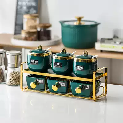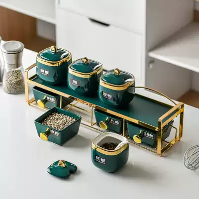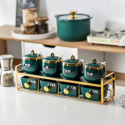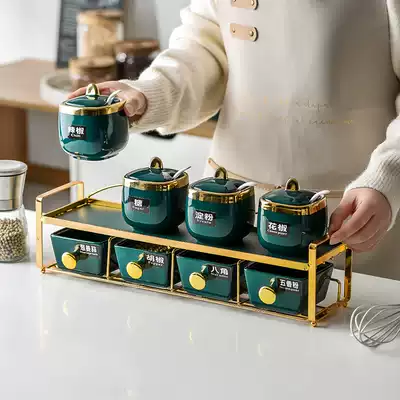 High-value light luxury ceramic seasoning box combination set Kitchen supplies double-layer seasoning jar Salt monosodium glutamate seasoning bottle