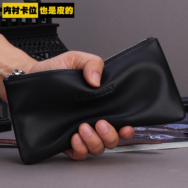 Men's long money wallet mobile phone Baotou layer cow leather genuine leather soft handbag male hand holding bag hand grip bag small mini-bag woman