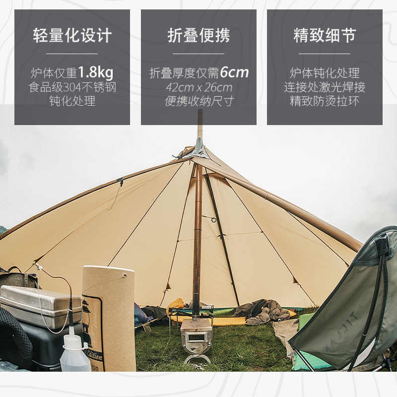Sanfeng tribal wood furnace 304 stainless steel outdoor self - driving camping ultra - light tent heating furnace equipment