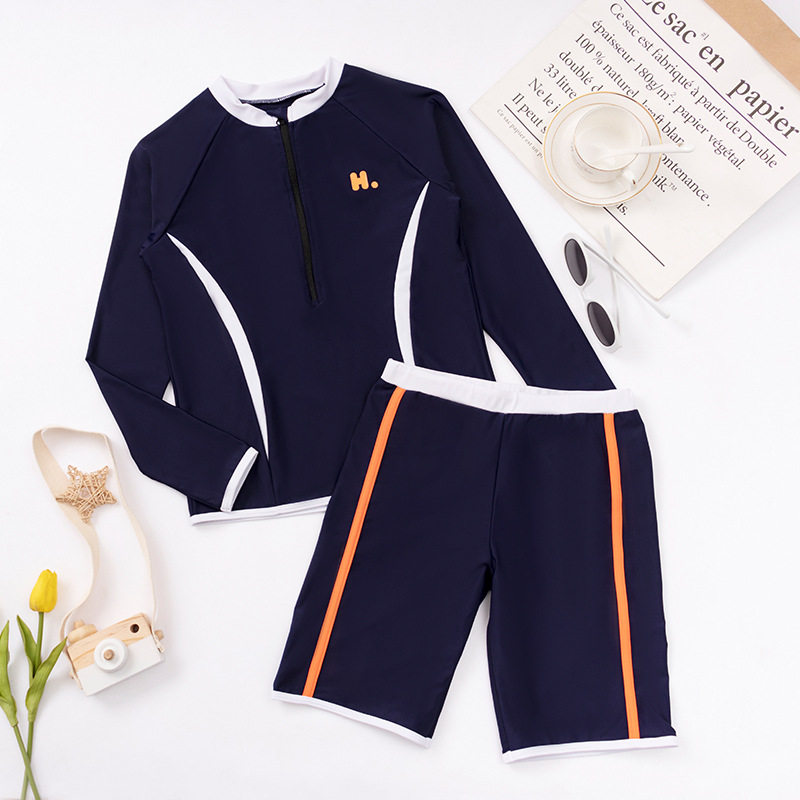 2021 New Boys Swimsuit Slimming Big Boys 10-15 Years Old Long Sleeve Two-Piece Two-Piece Boys Youth Sports