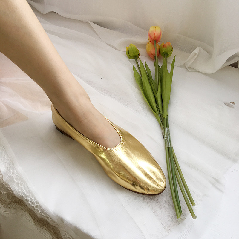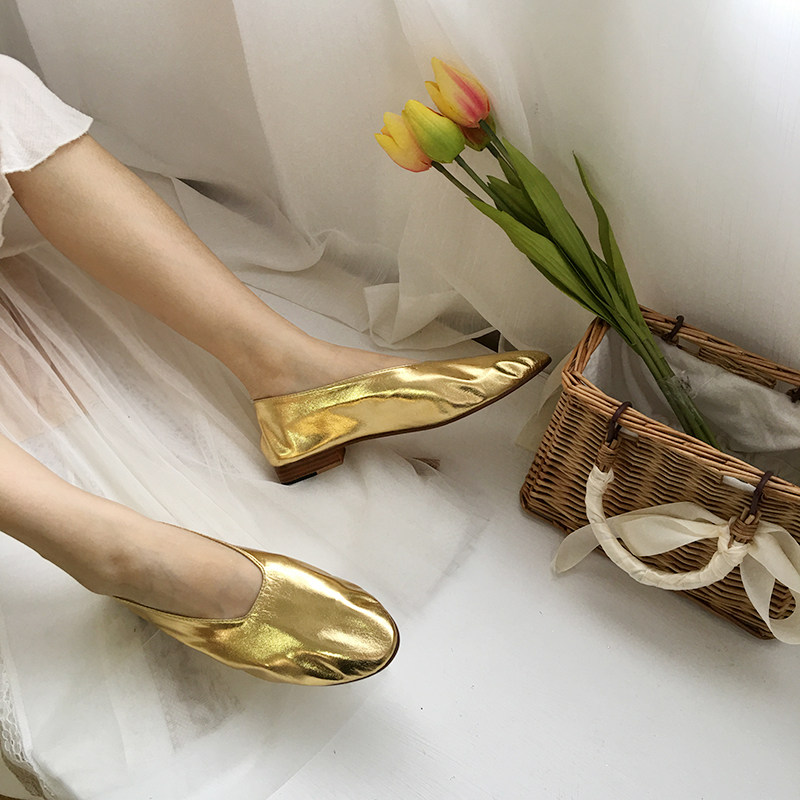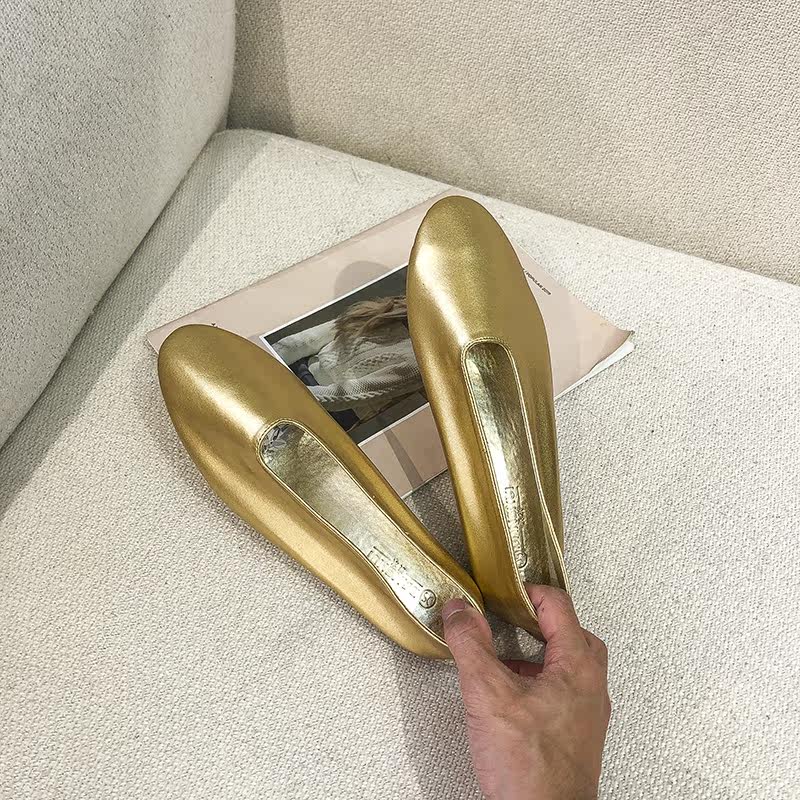 Single shoes women's 2021 new fairy warm soft bottom retro grandma shoes all-match lazy simple flat gold single shoes