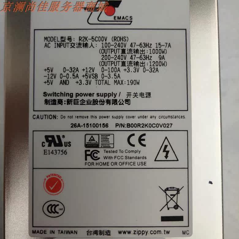 Brand new original new ju R2K-5C00V server hot swappable 1200w redundant power supply cage module retail