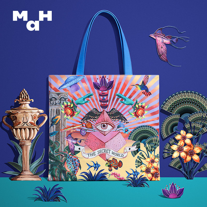 MAH Mystery World Tote Bag Women Large Capacity Examination Kits Original Illustrations Design Single Shoulder Bag Cartoon Pattern