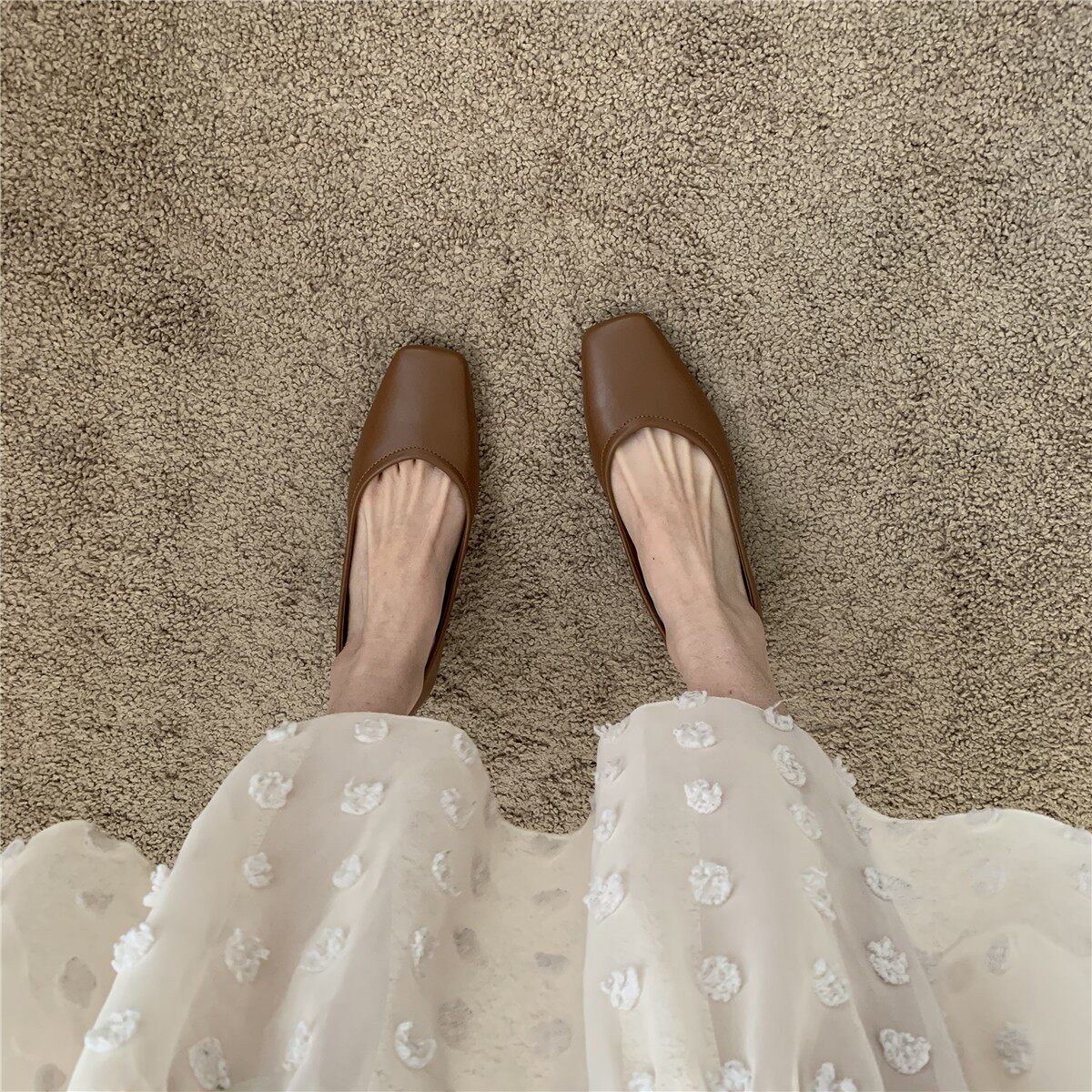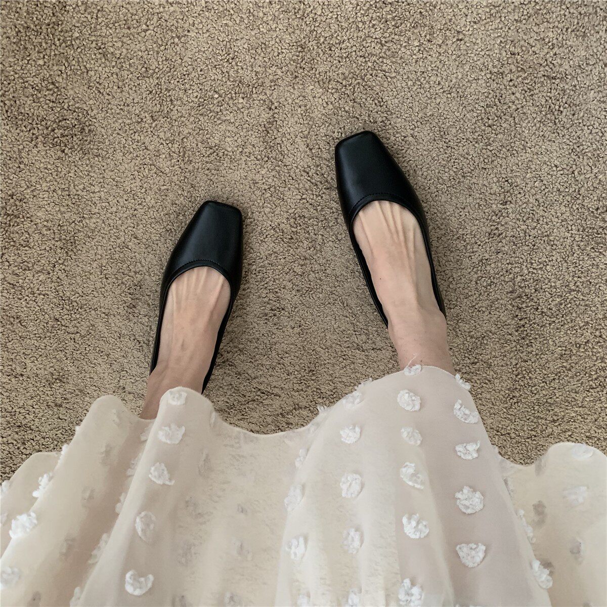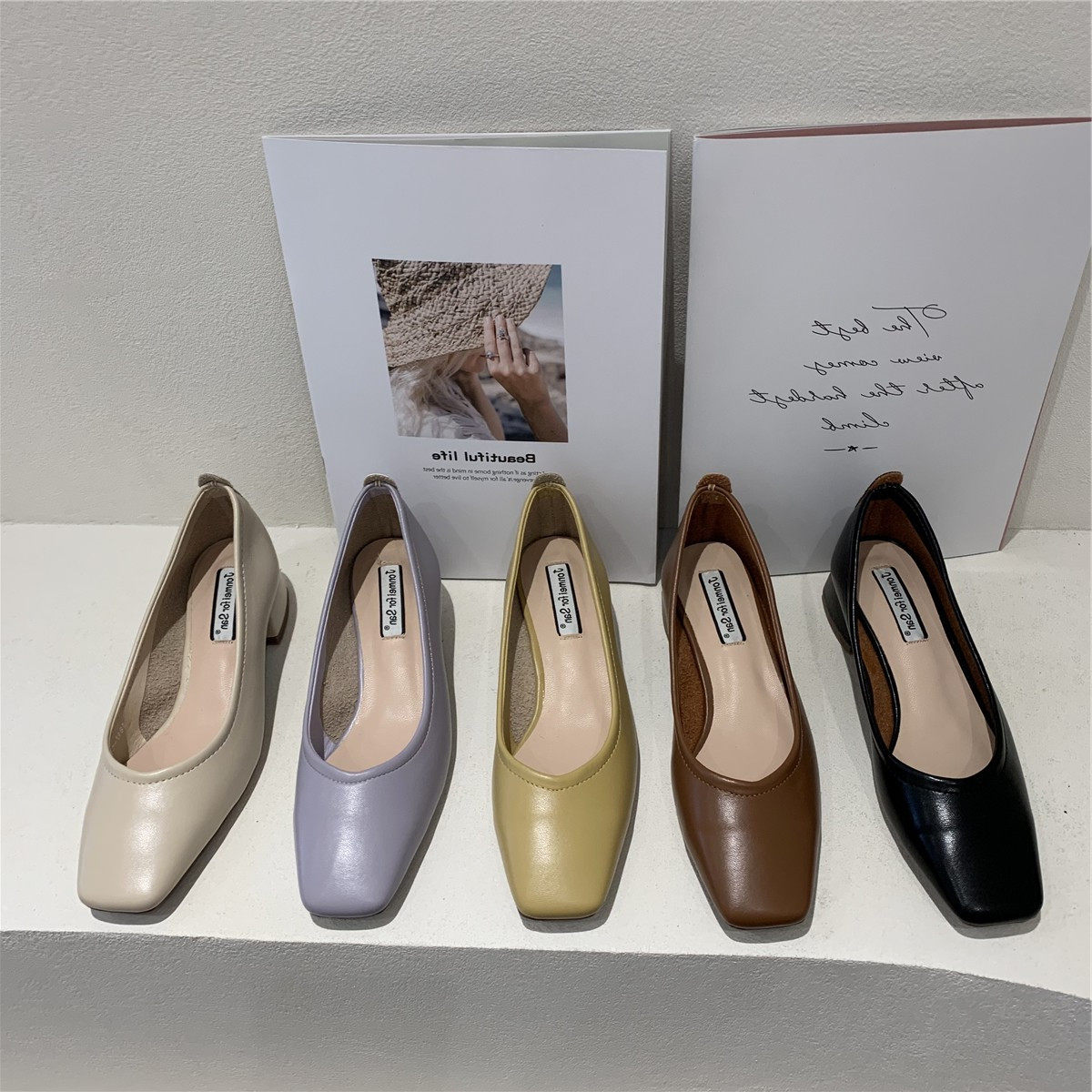 Heart-moving moment -- ITSK -- single shoe female French style coarse heel square head shallow mouth soft leather with grandma shoes boat shoes-Taobao