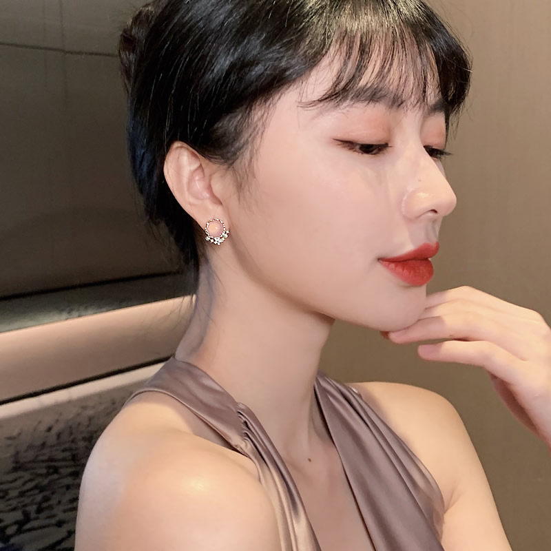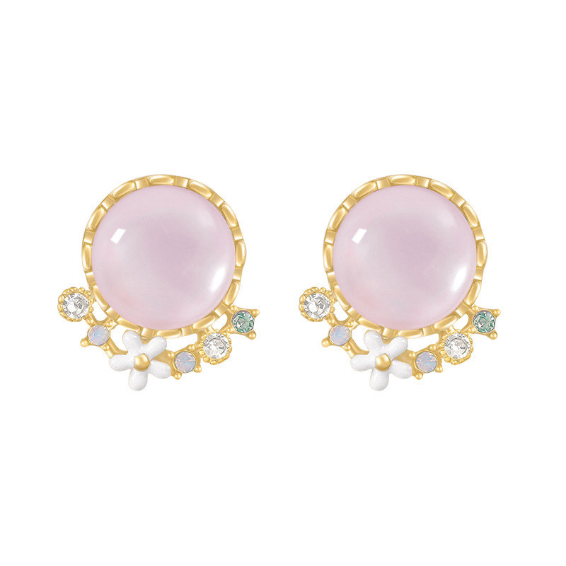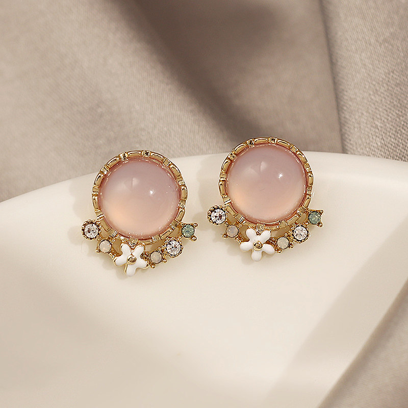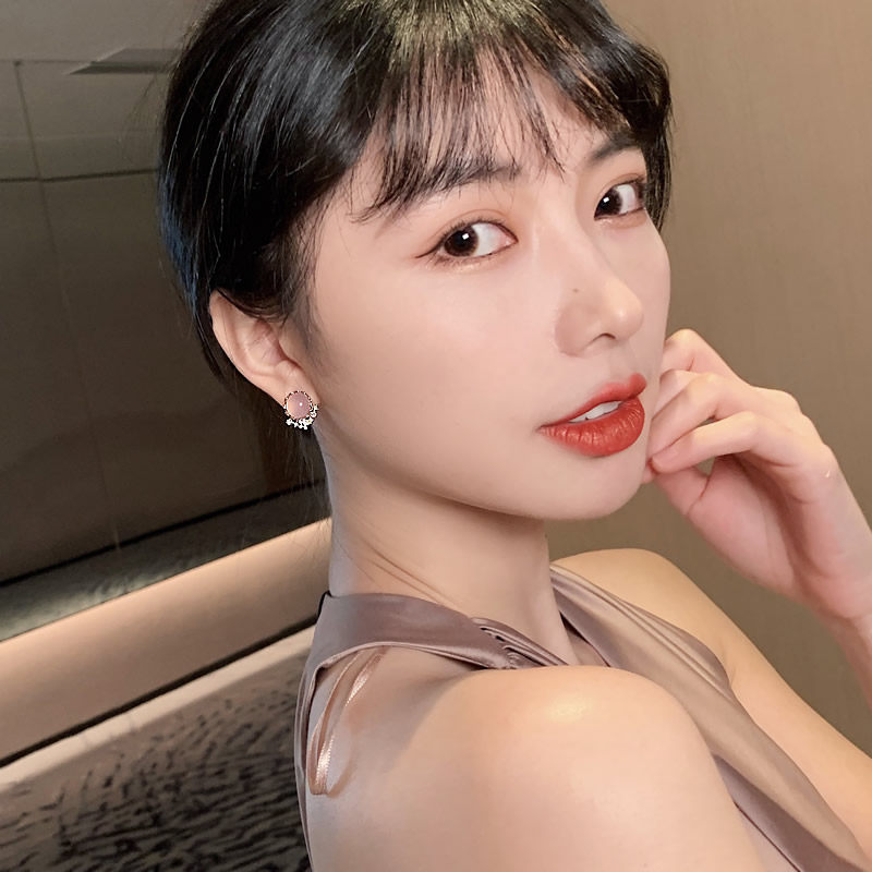 Pink cat eye earrings female Korean net red temperament small ear earrings 2021 new fashion earrings earrings 925 silver needle