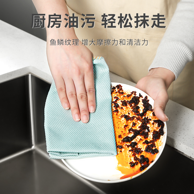 Fish scale rag leaves no marks dishcloth to absorb water without falling hair to oil not stained with oil housework cleaning kitchen Brush Bowls God