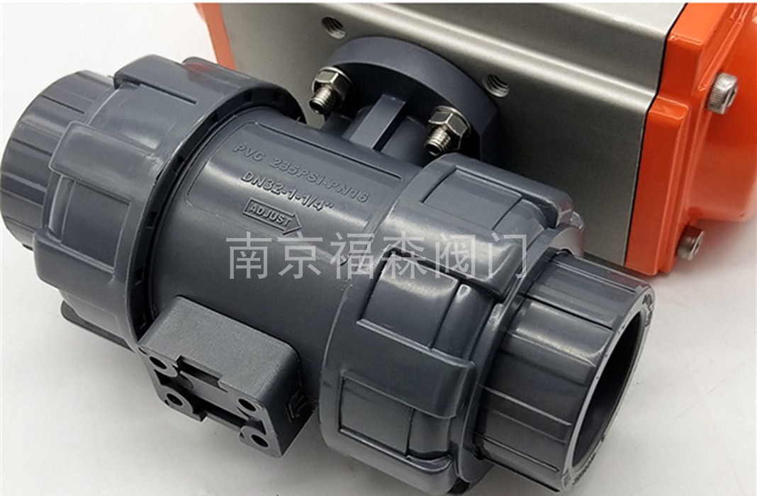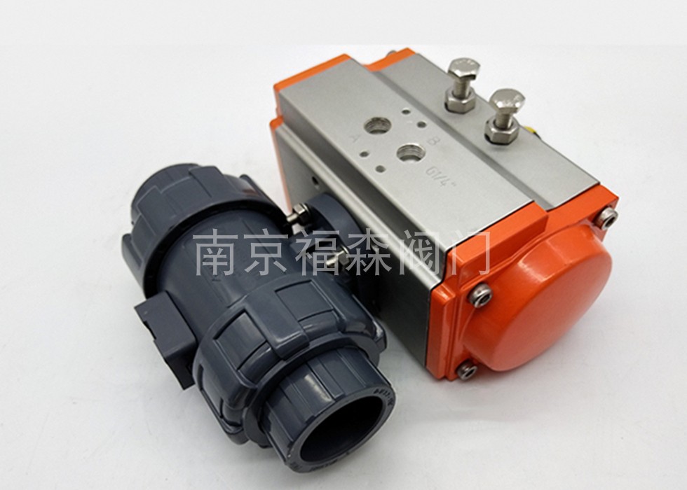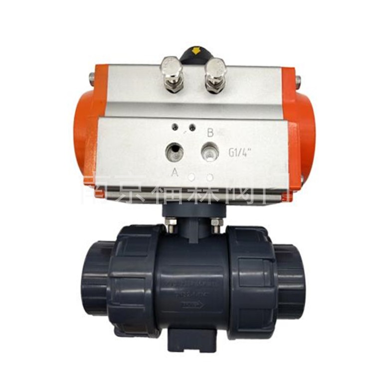 AT pneumatic ball valve Q661F-10S double by order live connection Upvc plastic tetrafluoroacid and alkali corrosion resistance DN 65 80