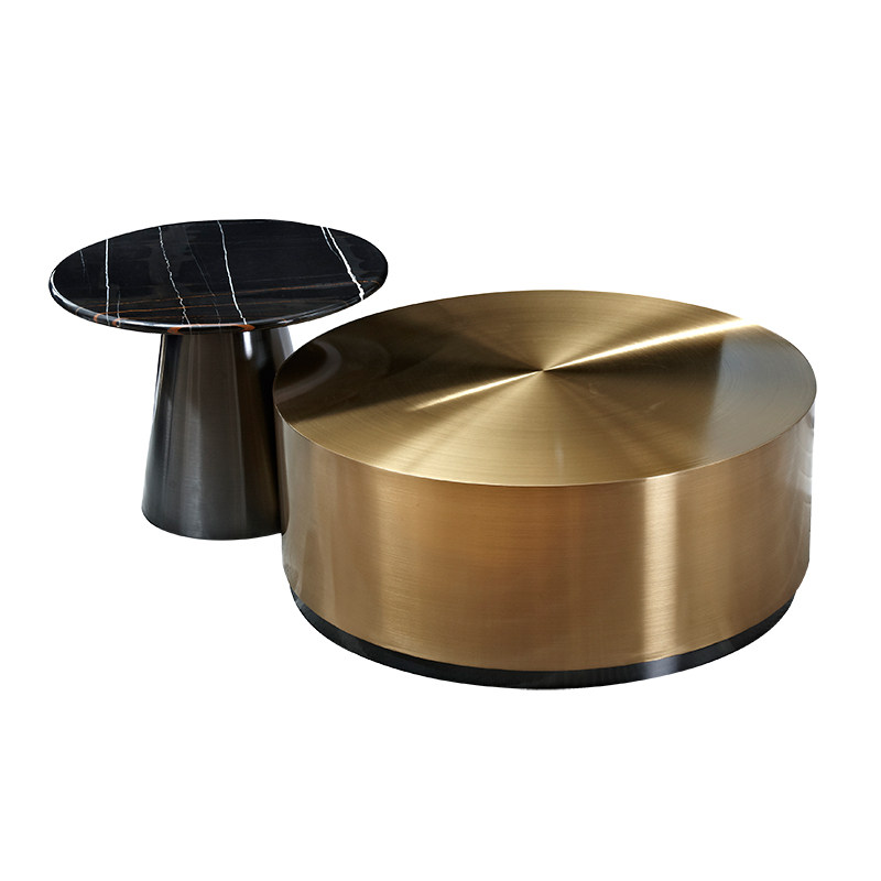 Size set Φ900*H360mm large coffee table (metal surface) Φ600*H450mm small coffee table (marble surface)