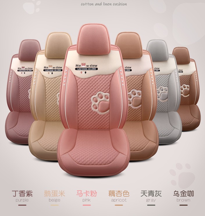 21 new cartoon car cushion goddess cute full surrounded seat cover four seasons universal linen breathable seat cover