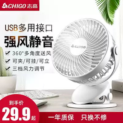 Zhigao USB small fan small student dormitory bedroom mini charging type powerful Baby Doll car blowing non-staple food outdoor clip can clip electric fan lazy summer summer summer