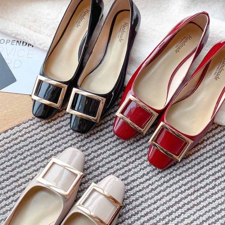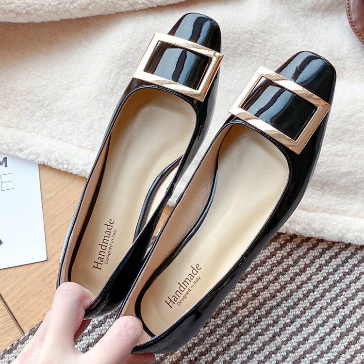 M L Monroe Temperament Difficult to File Small Fragrant Style Round Toe Low Heel Leather Shallow Mouth Square Buckle Art Gentle Boat Shoes