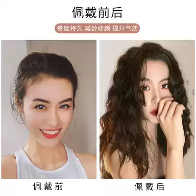 Wig piece real hair top head replacement fluffy curly curling hair film cover white hair no trace invisible natural cover banghai wig female