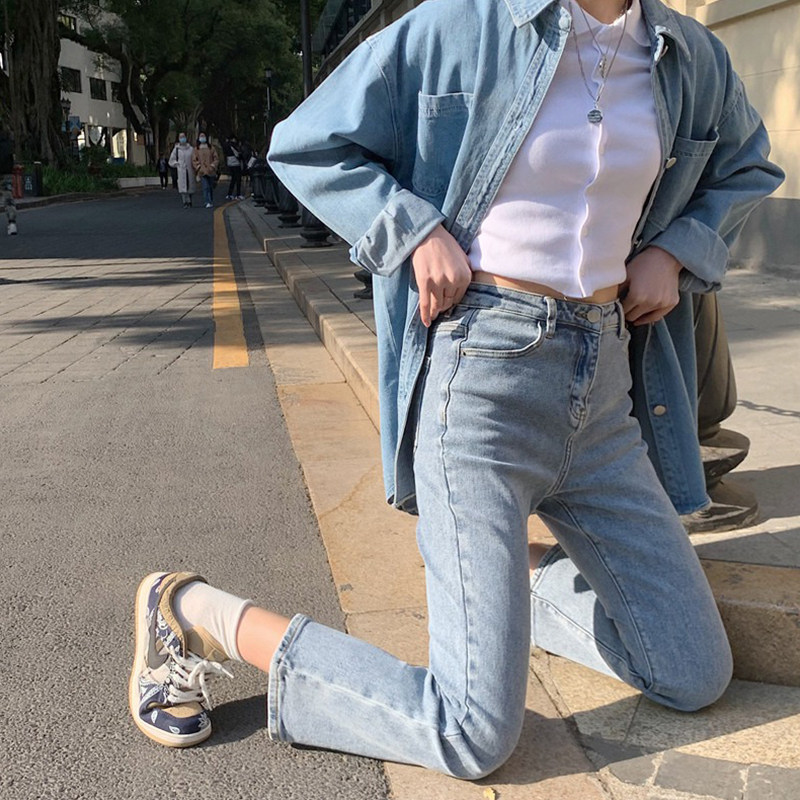 Large size jeans woman 2022 new foreign trumpeter pants retro port with high waist and slim and slim size 90% pants