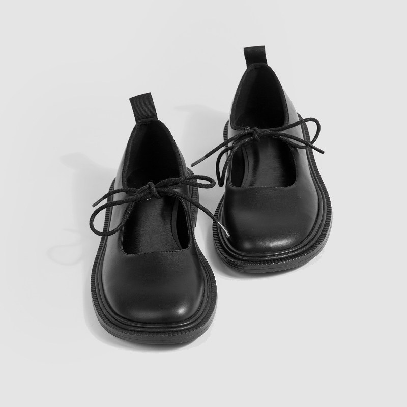 2022 summer new lace-up Mary Jane shoes women's British style flat small leather shoes college JK black flat shoes women