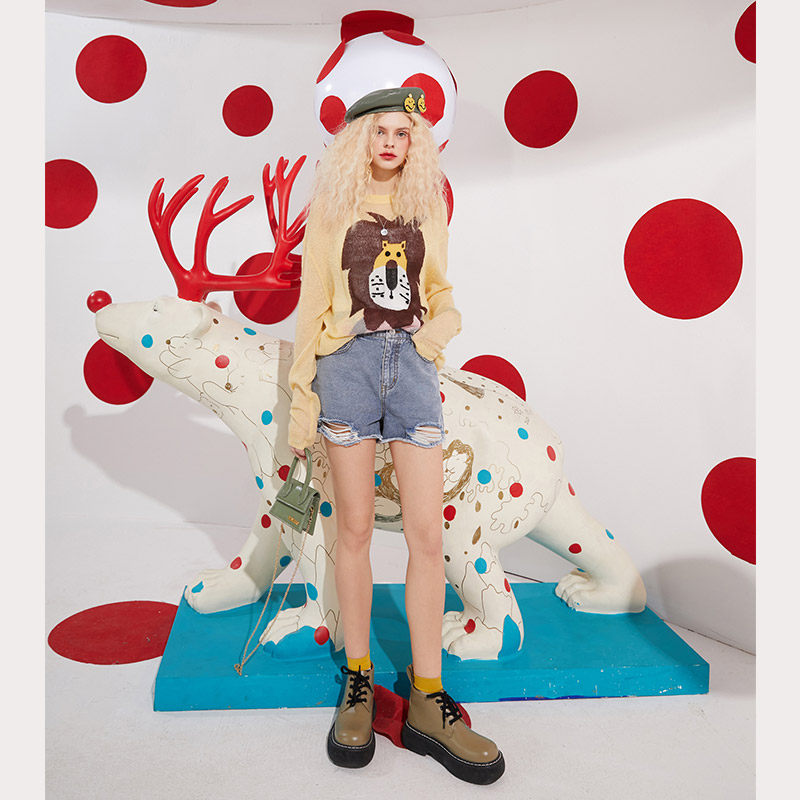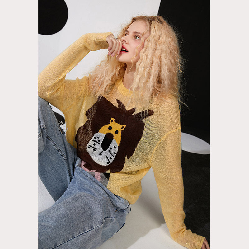 (new) Selfie Pocket Jacquard Thin-knit cardiovert sweater women 2022 springtime set with loose blouses