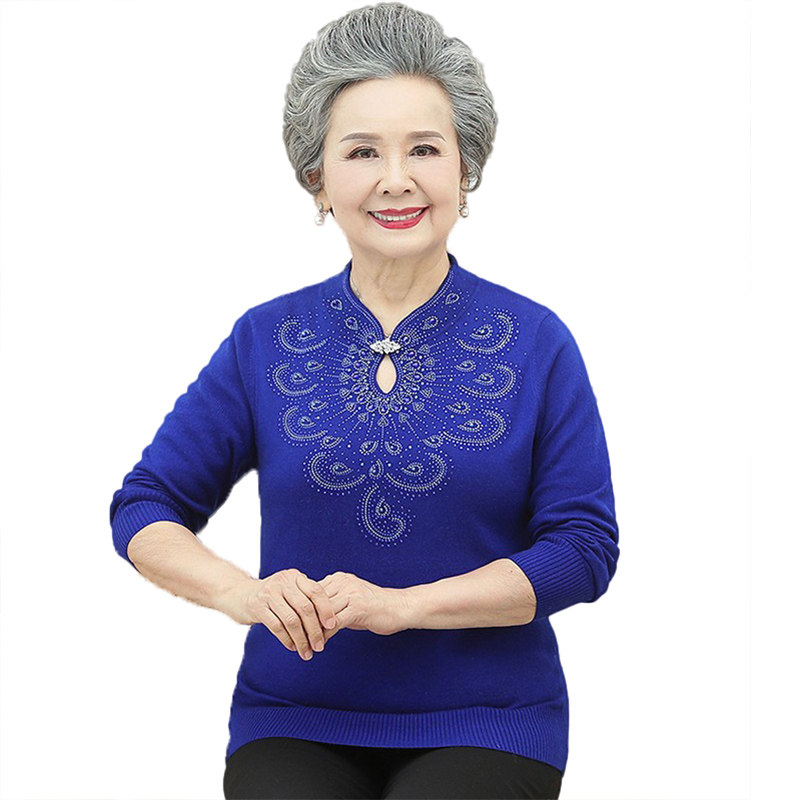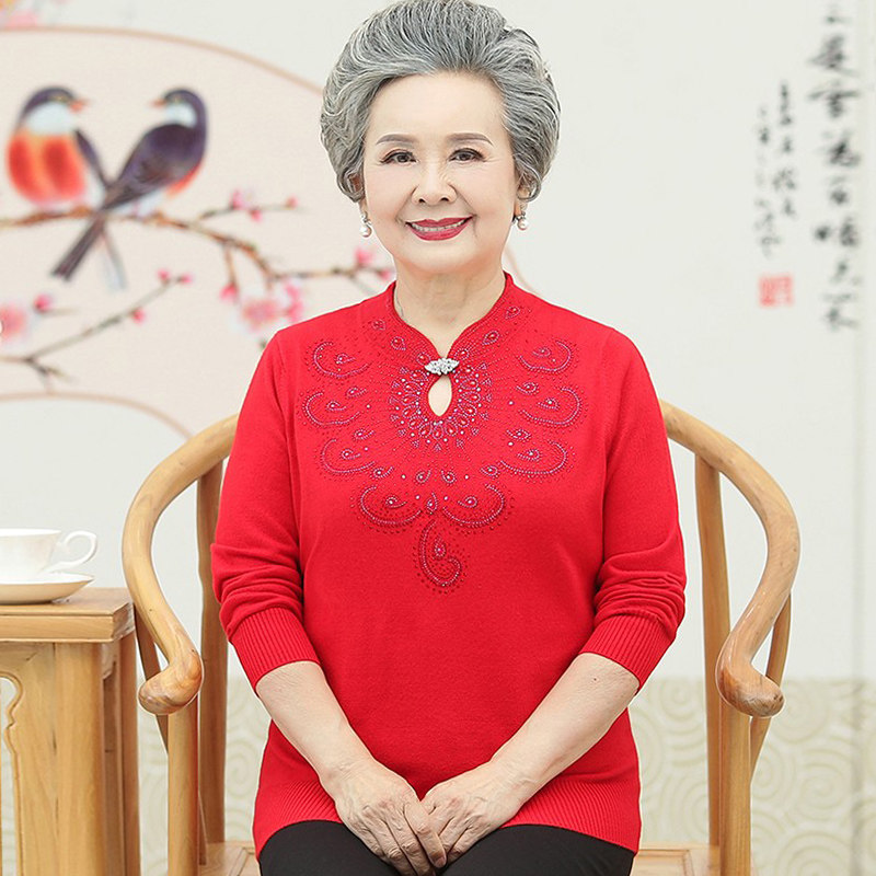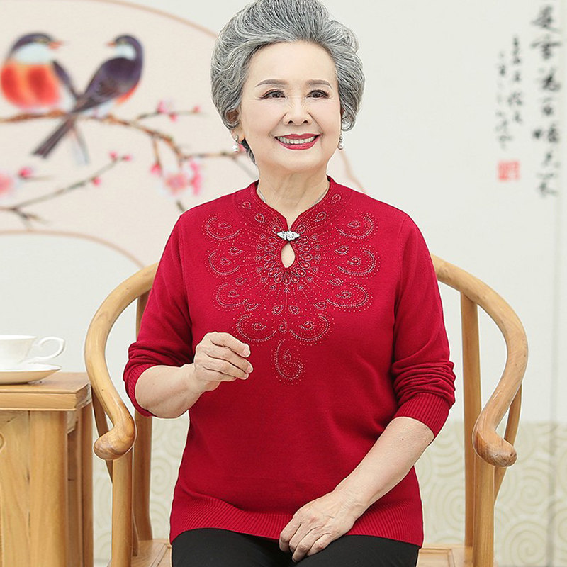 Middle-aged grandma Spring and Autumn-clothed long sleeve sweater sweater cover old wool old mom coat