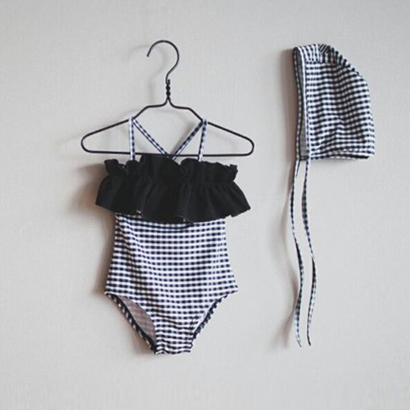 2021 new children's swimsuit female one-piece girl cute plaid little princess swimsuit big virgin girl swimsuit