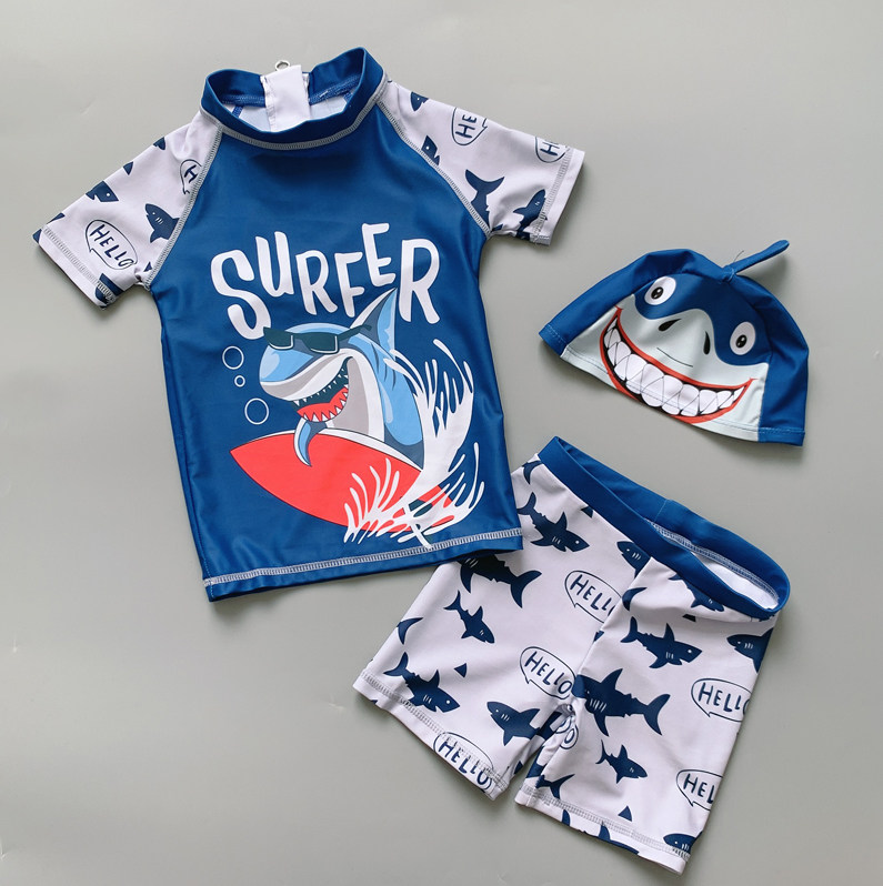 2022 new Korean children swimsuit boy shark two style sunscreen dry boy cute swim suit swimming suit