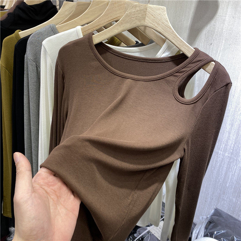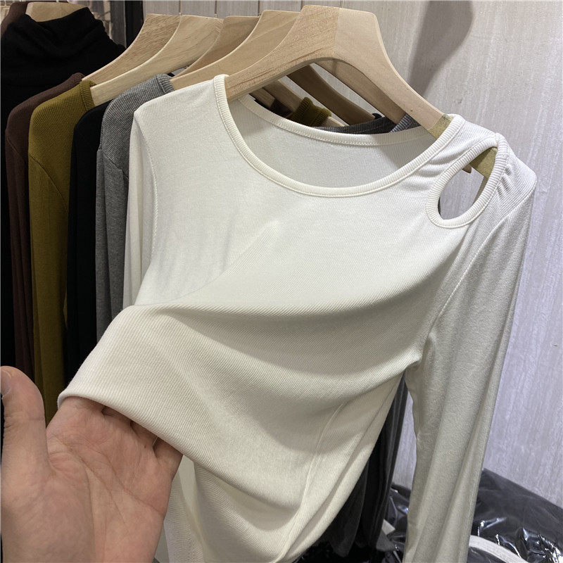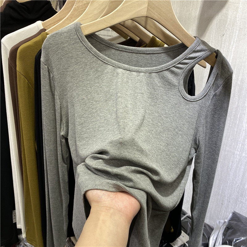 Oukan hollow shoulder asymmetrical long sleeve T shirt in the spring 2021 new thread with a blouse gas topper