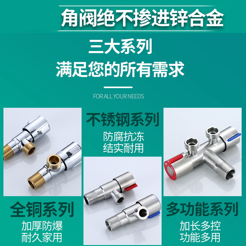 Full copper triangular valve 4 water heater internal and external wire 304 stainless steel cold and hot water lengthened thickened eight-word valve water stop valve