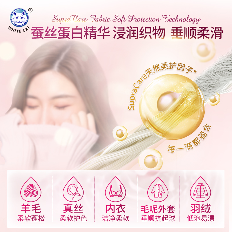 White cat wool silk detergent 570g*3 bottles high-end clothing washing silk underwear fluffy and not frizz