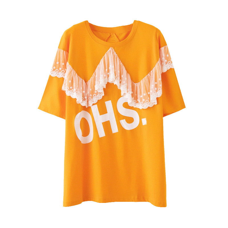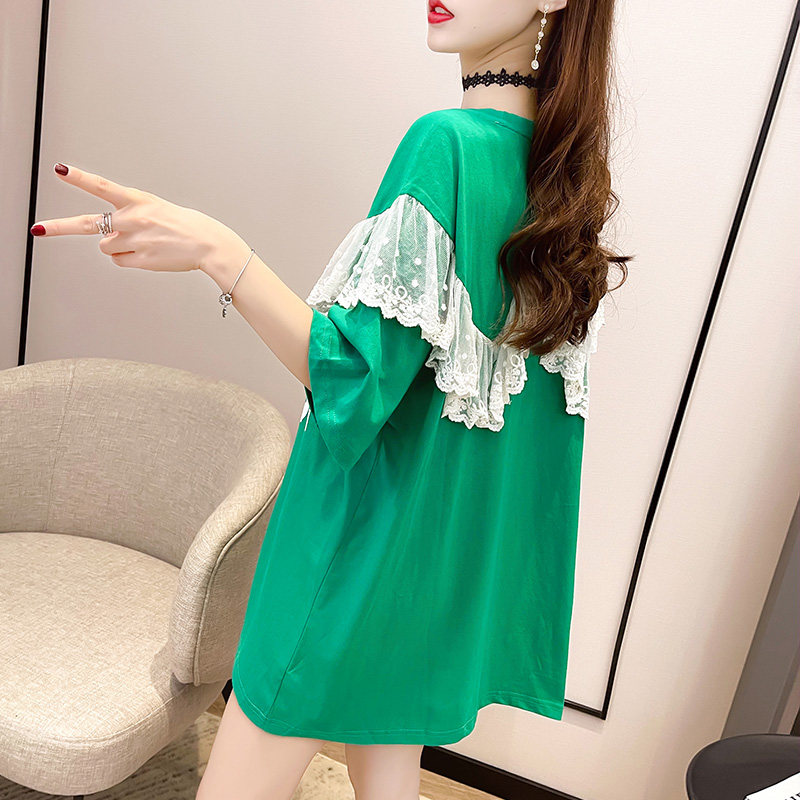 Pregnant woman summer clothing blouse 2021 new loose lace splicing medium long version of undershirt pure cotton short sleeve T-shirt Summer