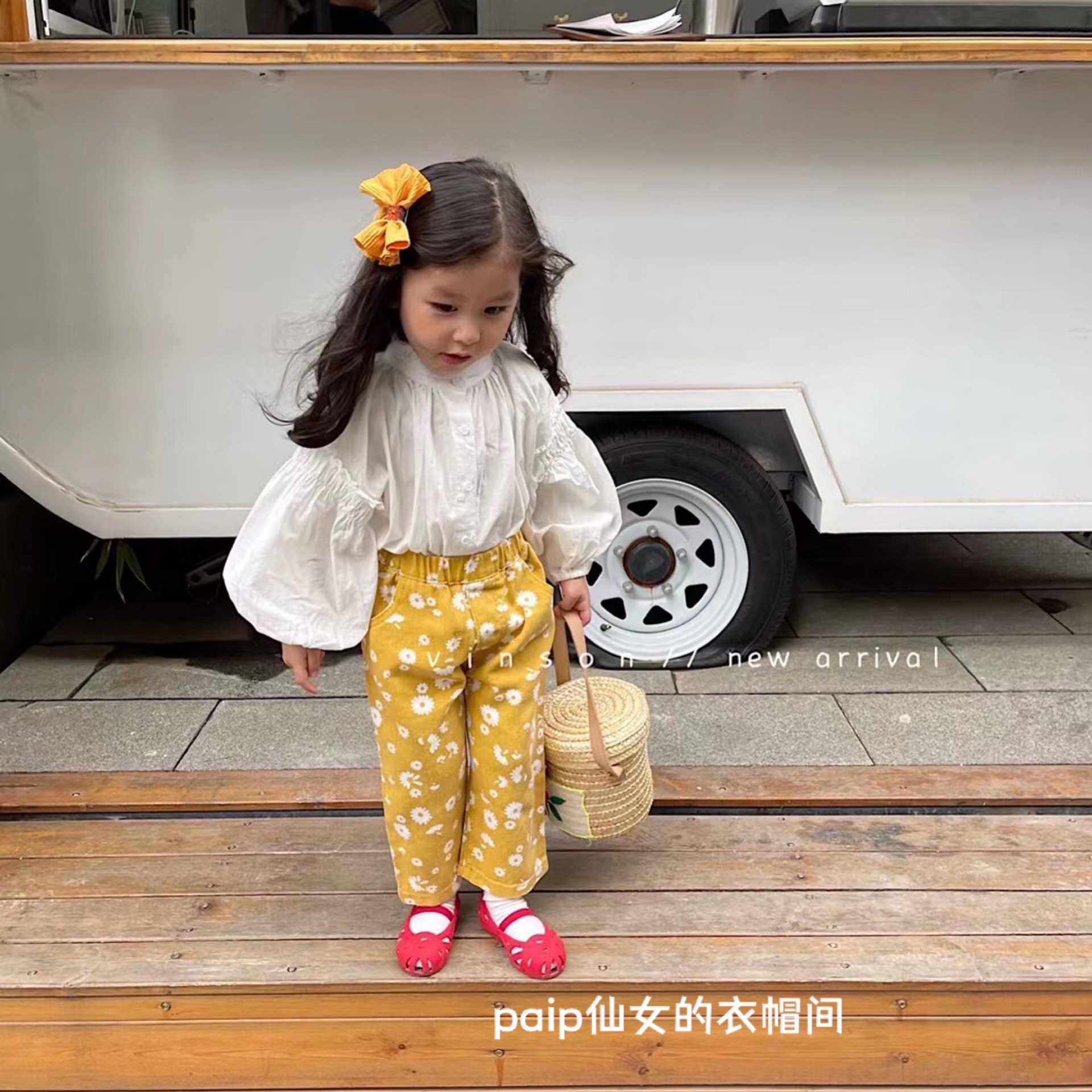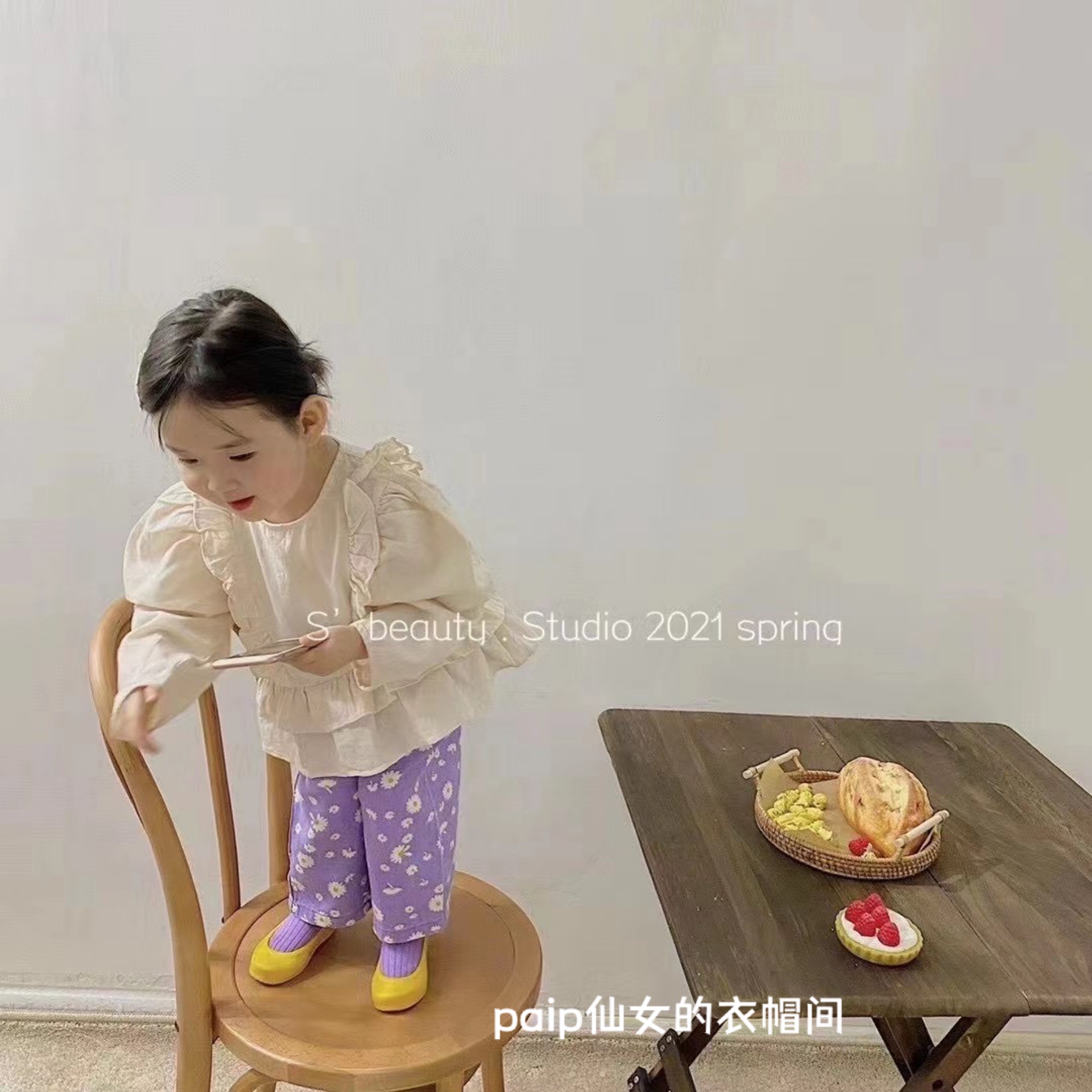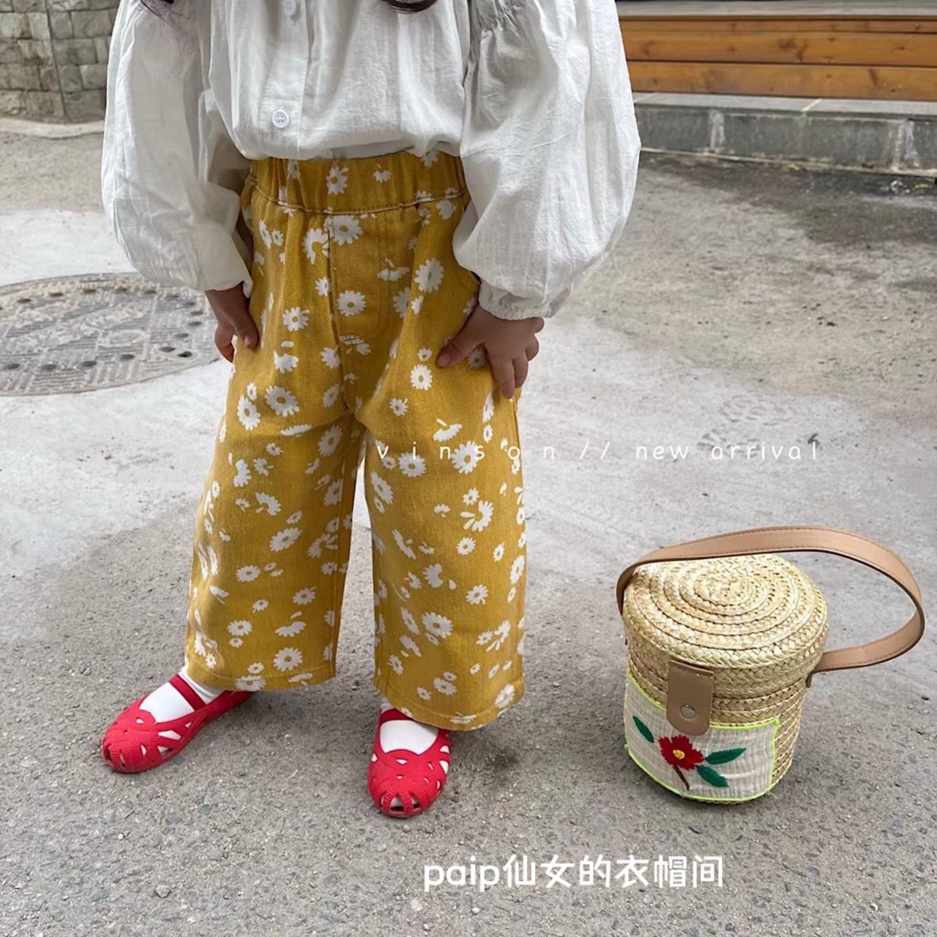 (paip home) spring 2021 children's clothing soft jeans small flowers fragrant Taro purple turmeric two-color ins Korea