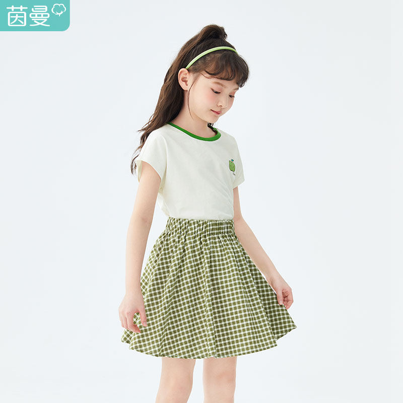 Inman Boy Clothing Girl Suit Foreign Pie Children Pure Cotton T-shirt Red half body dress Two sets 2022 Summer new