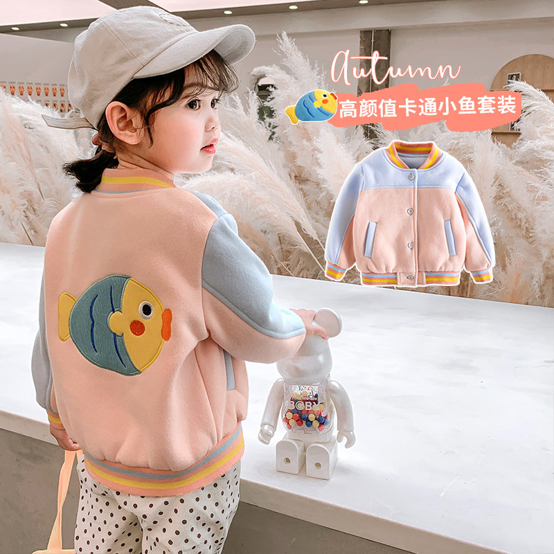 Girls Spring Coat 2022 New Style Foreign Style Kids Baby Girl Baby Girl Spring and Autumn Baseball Suit Baby Cardigan