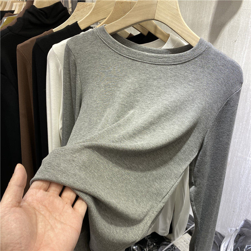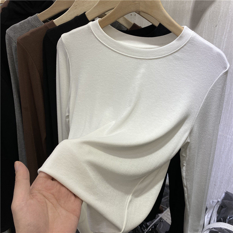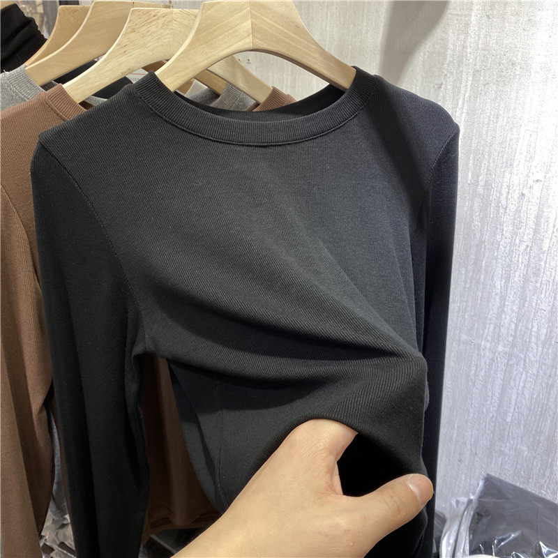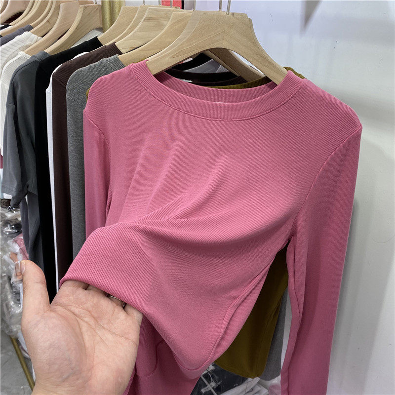 2022 Spring and Autumn New Pure - colored, round - collar thread T - shirt with a thin - tight blouse