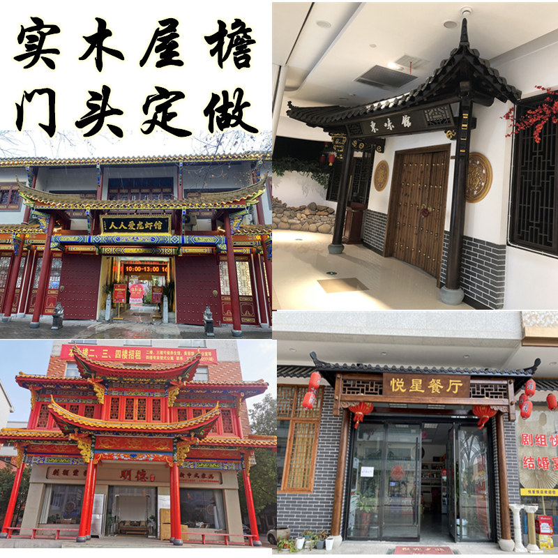 Dongyang wood carving Chinese style antique real wooden house eaves door head ancient building decorative gate tower angle plaque cornice signboard customization