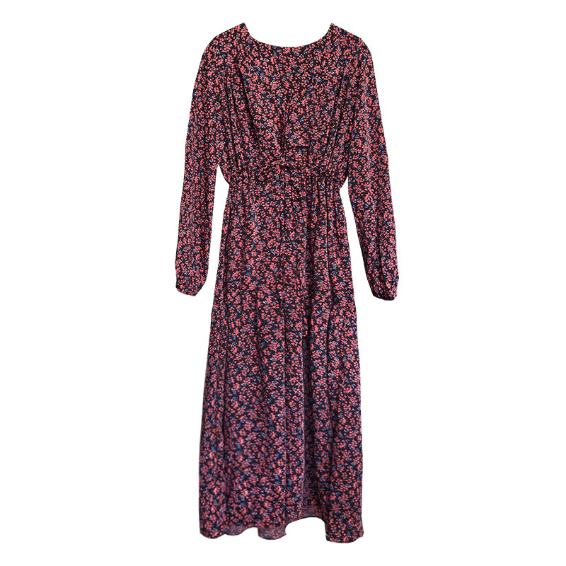 V-neck floral chiffon dress spring 2022 new cold wind women's high-end French knee-length dress