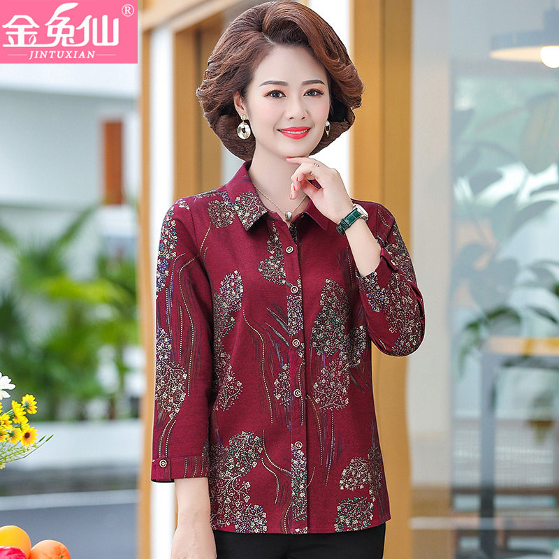 Mother's Shirts Women's Collared Middle-aged Summer Shirts Autumn Tops Middle-Sleeve Middle-aged Women's Thin Two-piece Suits