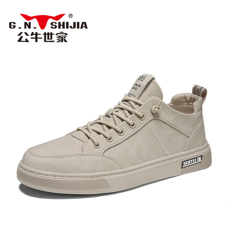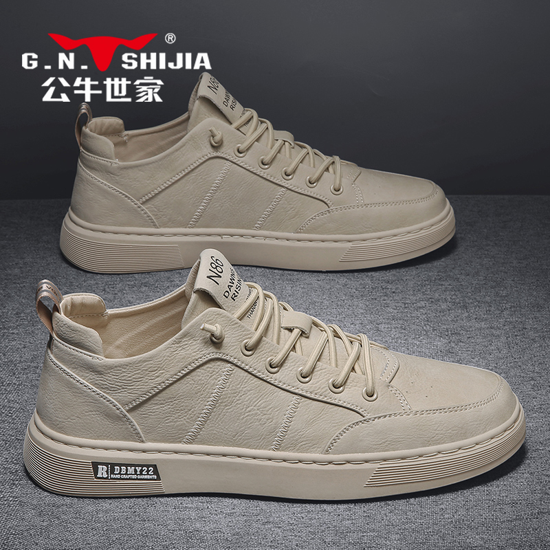 Bull family men's shoes 2022 new trendy autumn sports flat shoes Korean style trendy all-match casual leather shoes - Taobao