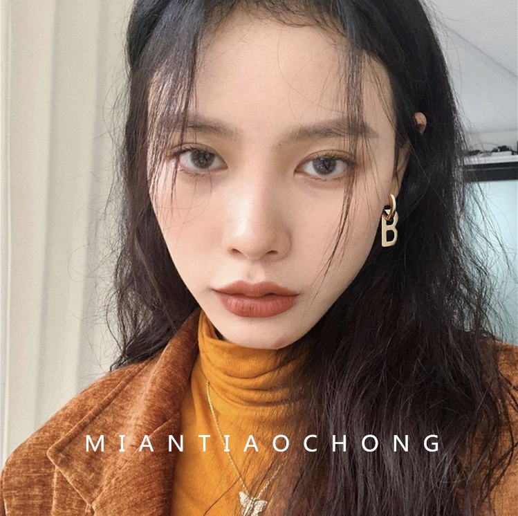 S925 silver needle European and American letters B hip-hop with wind ear pendant personality Exaggerated Metal Earrings Street Clapping Ear Clip