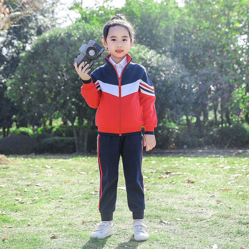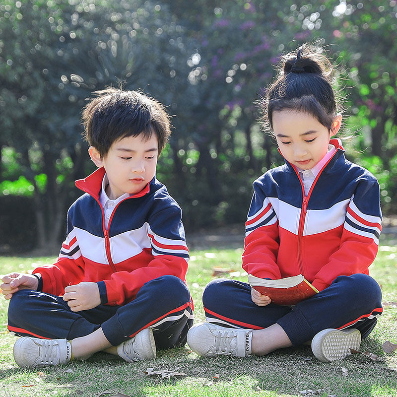 Pure cotton kindergarten garden uniform spring and autumn clothing college style school uniform suit primary school students red sports spring children's class uniform