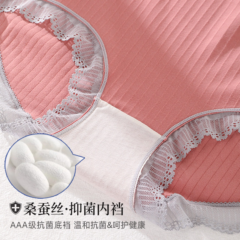 Large size underwear Fat mm Comfortable Breathable Lace Increased Pure Cotton High Waist Silk Underpants Antibacterial High Play Triangle Pants Woman