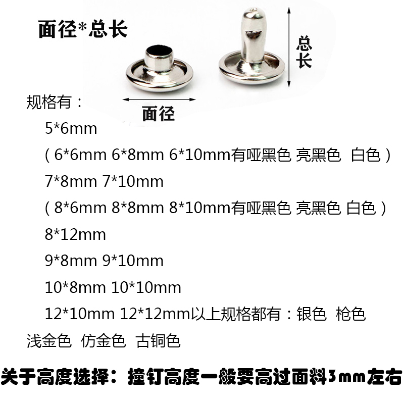 Double-sided rivet fixing primary-secondary accessories Clothing Clothing Bag hardware leather Sandals Bags to Knock Plane