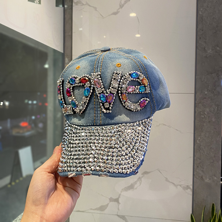 Tide brand diamond-encrusted cowboy hat spring and summer colorful diamond-encrusted peaked cap baseball cap ladies casual all-match sun visor trendy