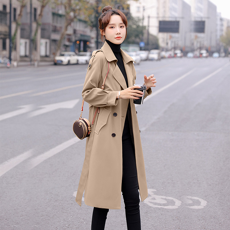 chic windsuit woman 2022 new spring autumn medium long version black outerwear small taller coat this year pop jacket