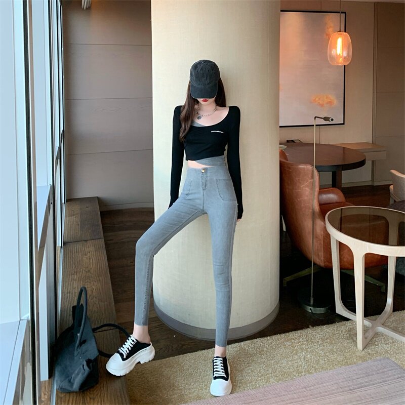 Jeans women's autumn 2021 new chic lingering elegant wind retro high waist tight slim pants long pants