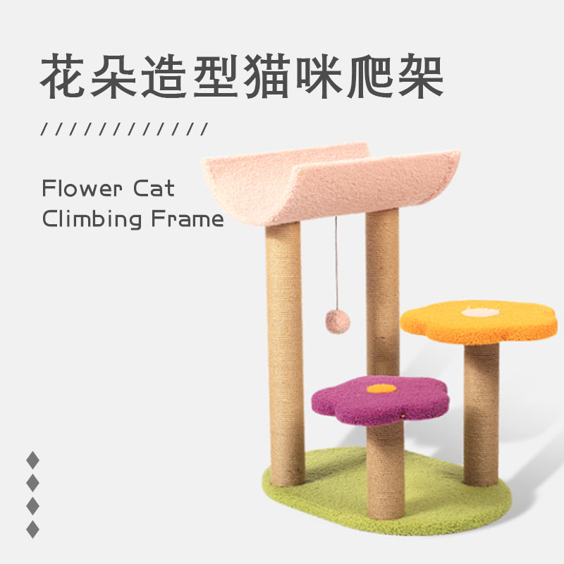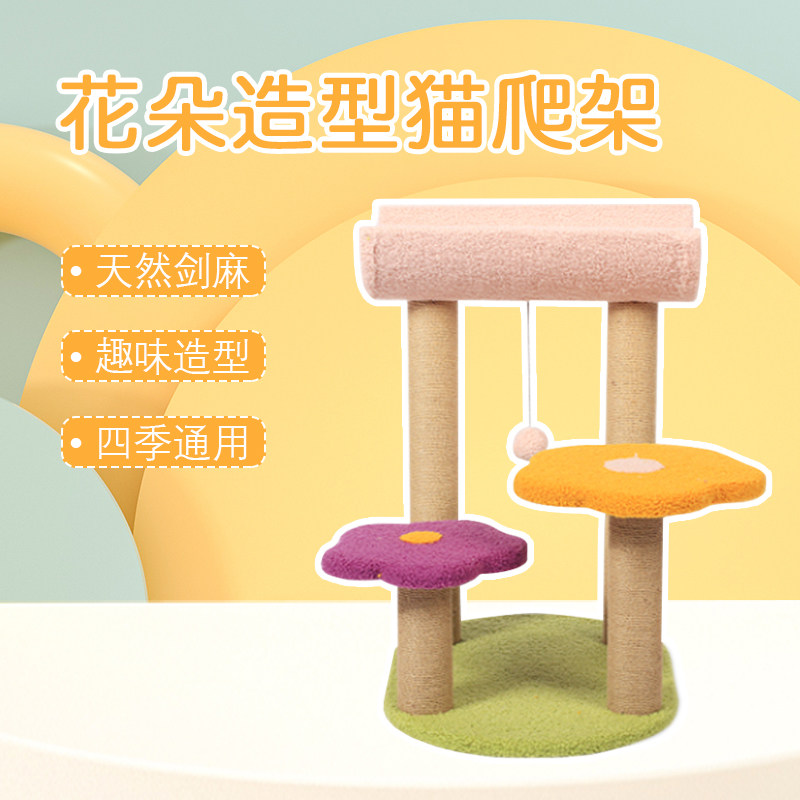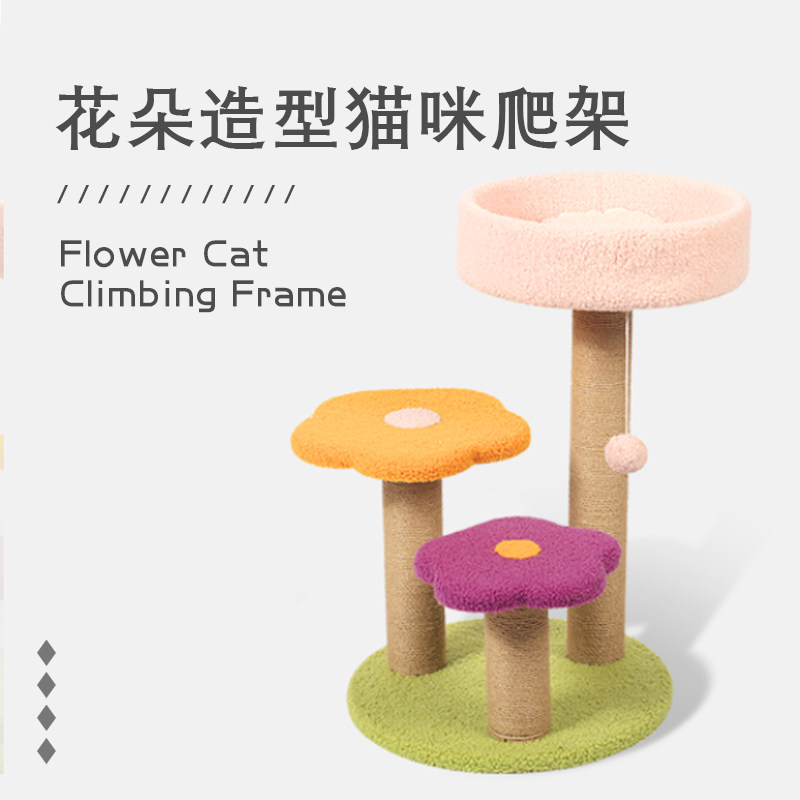 Soft cat climbing frame cat tree small flower shape column pet cat scratching board jumping platform grinding claw cat toy supplies