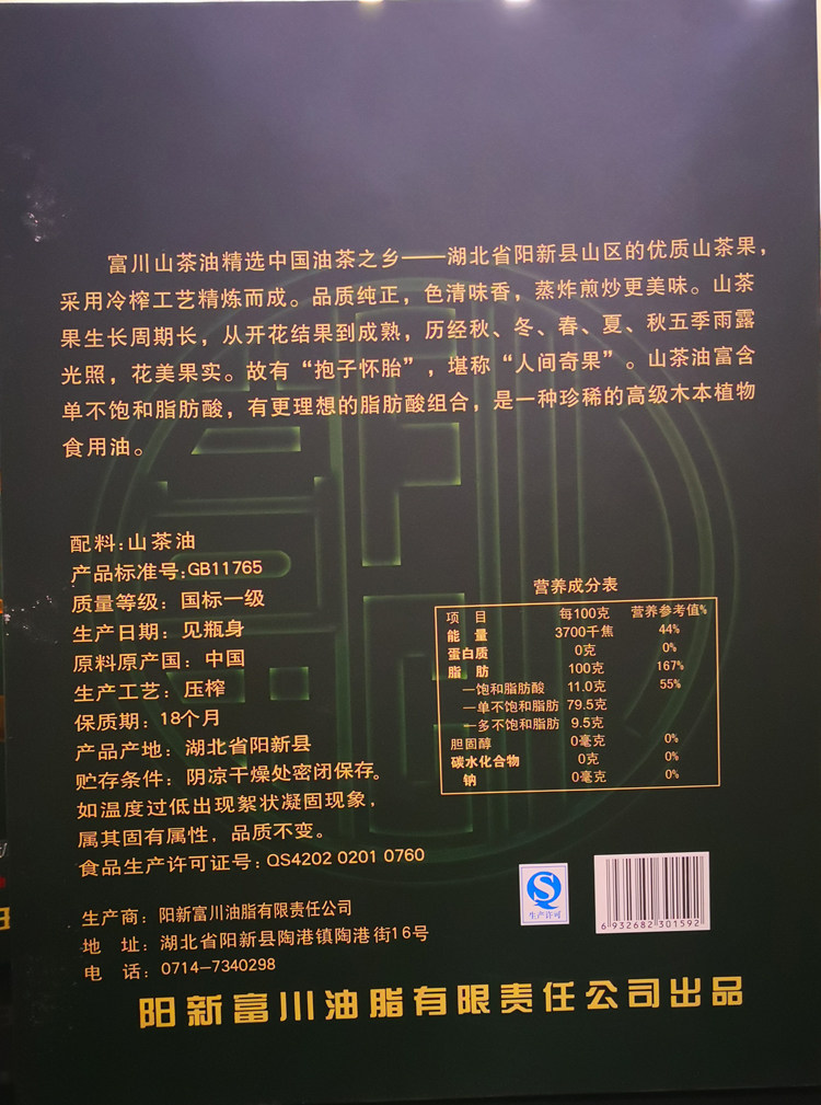 Yangxin specialized Fuchuan mountain tea oil 750ml*2 bottle of gift box 1 stage edible oil pregnant women with tea seed oil