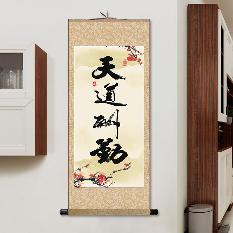 Funny version of Tiandao rewarding hanging painting Tang Yin calligraphy calligraphy and painting office study decorative painting silk scroll painting gift