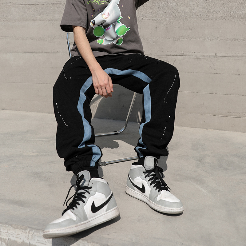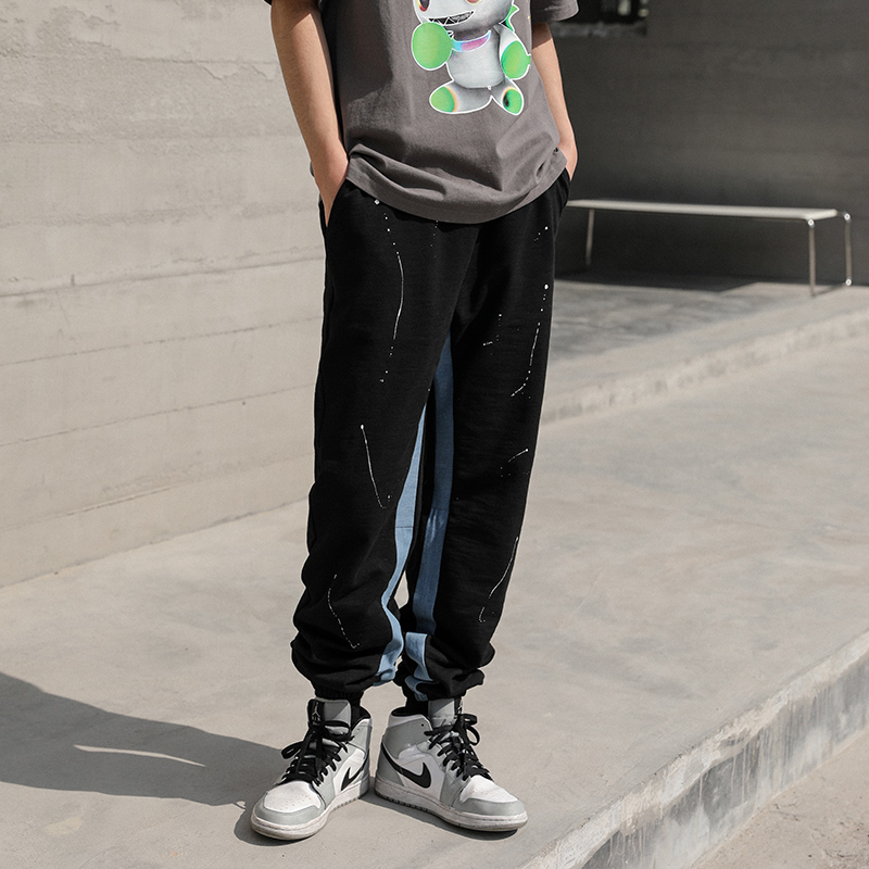 XINYINSU new factor basic guard trousers piled up sense of splash ink sweatpants loose casual trousers trendy brand