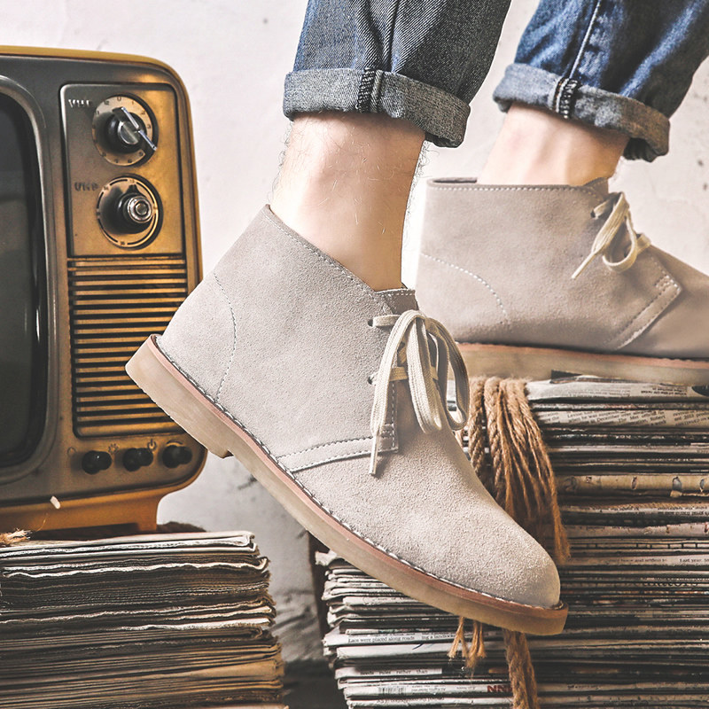 Martin boots men's autumn and winter British style men's boots casual high-top shoes leather short boots medium tube large size desert boots tide