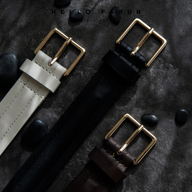 Classic square buckle daily look can be simple or retro full grain cowhide light luxury with skirt and coat belt belt